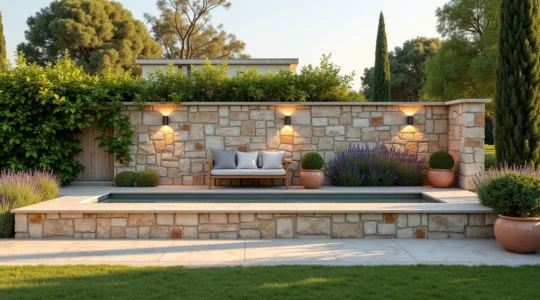Les murs de votre jardin (clôtures, murs de soutènement) ne sont pas de simples limites, mais des surfaces d’expression. Un mur de clôture un peu triste peut se métamorphoser complètement. Plutôt que de le cacher, il faut l’habiller : enduit coloré, peinture, parement en pierre ou en bois, bardage… Les options sont nombreuses pour qu’il devienne un élément de décoration à part entière.