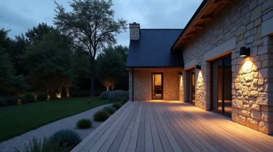 Un bon plan d’éclairage extérieur a un double objectif : sécuriser les déplacements (allées, escaliers) et créer une ambiance magique à la nuit tombée. Il faut varier les sources et les types de luminaires :