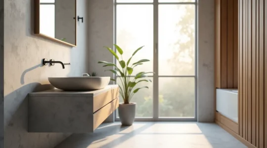 La salle de bain se transforme en un sanctuaire de bien-être. L’aménagement vise à créer une atmosphère de sérénité et de luxe. Cela passe par le choix de matériaux nobles comme la pierre, le bois exotique ou, encore une fois, le béton pour un effet sculptural. La baignoire îlot, lorsqu’elle est bien mise en scène, devient la pièce maîtresse qui transforme la perception de la pièce, l’élevant au rang d’objet de design.