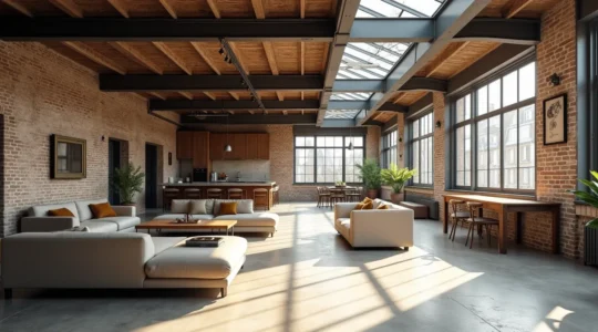 Le style industriel n’est pas réservé aux anciennes usines. Il peut être adapté à des surfaces plus modestes. L’idée n’est pas de copier, mais de s’inspirer de sa grammaire : la fonctionnalité, la modularité et la mise en valeur des matériaux bruts. Dans un studio, on optera pour du mobilier polyvalent et léger, une verrière pour cloisonner sans perdre la lumière, et quelques touches bien choisies : des suspensions en métal, un mur d’accent en brique, un sol en béton ciré.