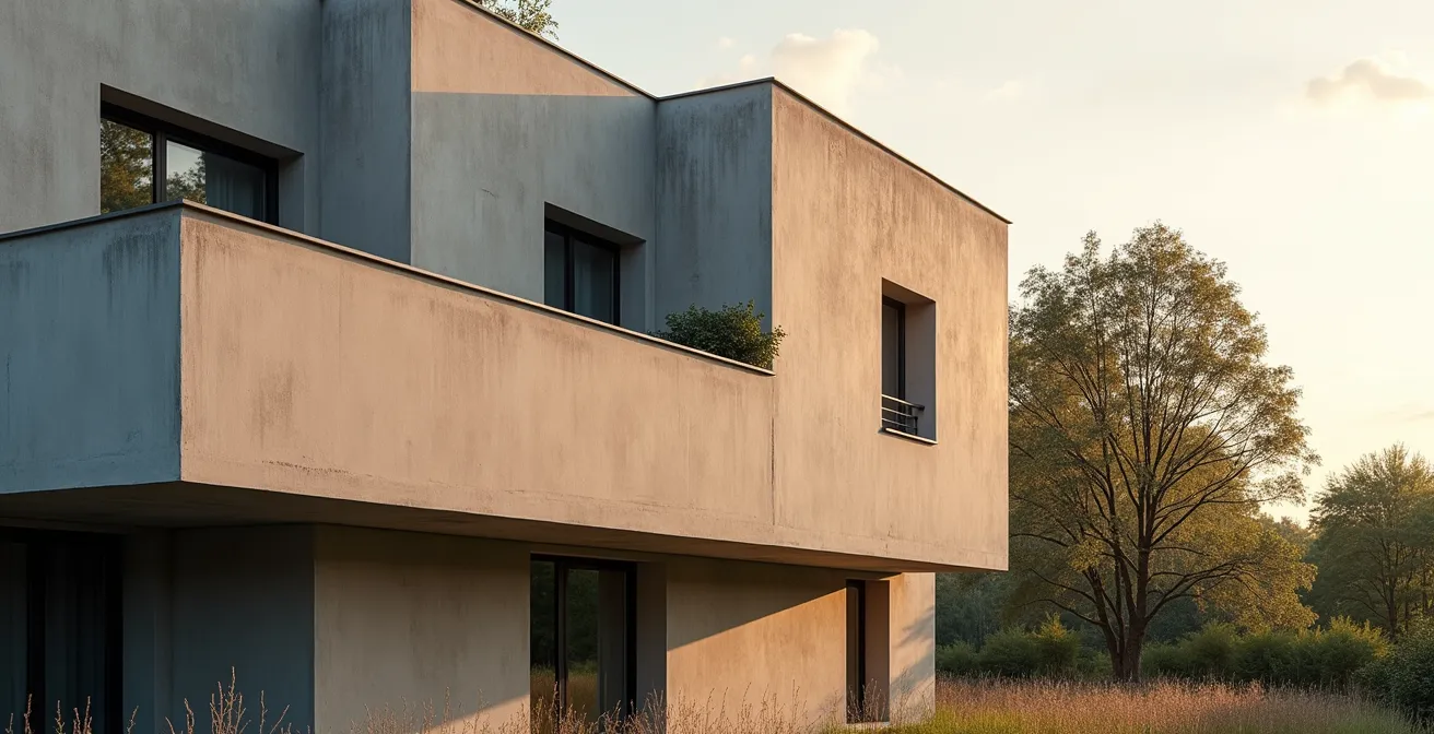 La façade est la peau de votre maison, sa première signature architecturale. Plutôt que de la considérer comme une simple enveloppe à recouvrir, le béton permet de la penser comme une surface vivante, capable de capter la lumière et de créer des textures uniques. Les technologies modernes ont transformé le béton en un matériau de parement sophistiqué, loin de l’image du mur brut et froid. On ne parle plus de surface, mais de vibrations et de reliefs.