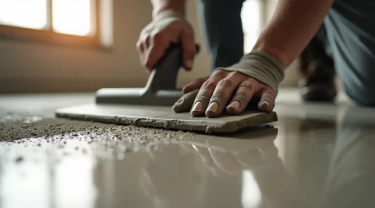 Très tendance, l’effet béton (béton ciré, enduit…) est plus complexe qu’il n’y paraît. Obtenir un rendu nuancé et vivant, et non un simple aplat gris, dépend du geste de l’artisan. Des techniques comme le « ferrage » ou le « lissage » à la taloche, le choix des outils ou l’application de plusieurs couches de teintes légèrement différentes sont des savoir-faire qui ne s’improvisent pas. La préparation du support, comme un ancien carrelage, est également une étape fondamentale pour garantir l’adhérence et éviter les fissures.