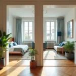 - Murs d’accent : Identifiez un mur bien éclairé mais sans grand intérêt architectural (un mur de fond de couloir, par exemple) et osez une couleur forte comme un bleu Klein ou un terracotta pour lui donner une nouvelle dimension, en contraste avec des moulures blanches.