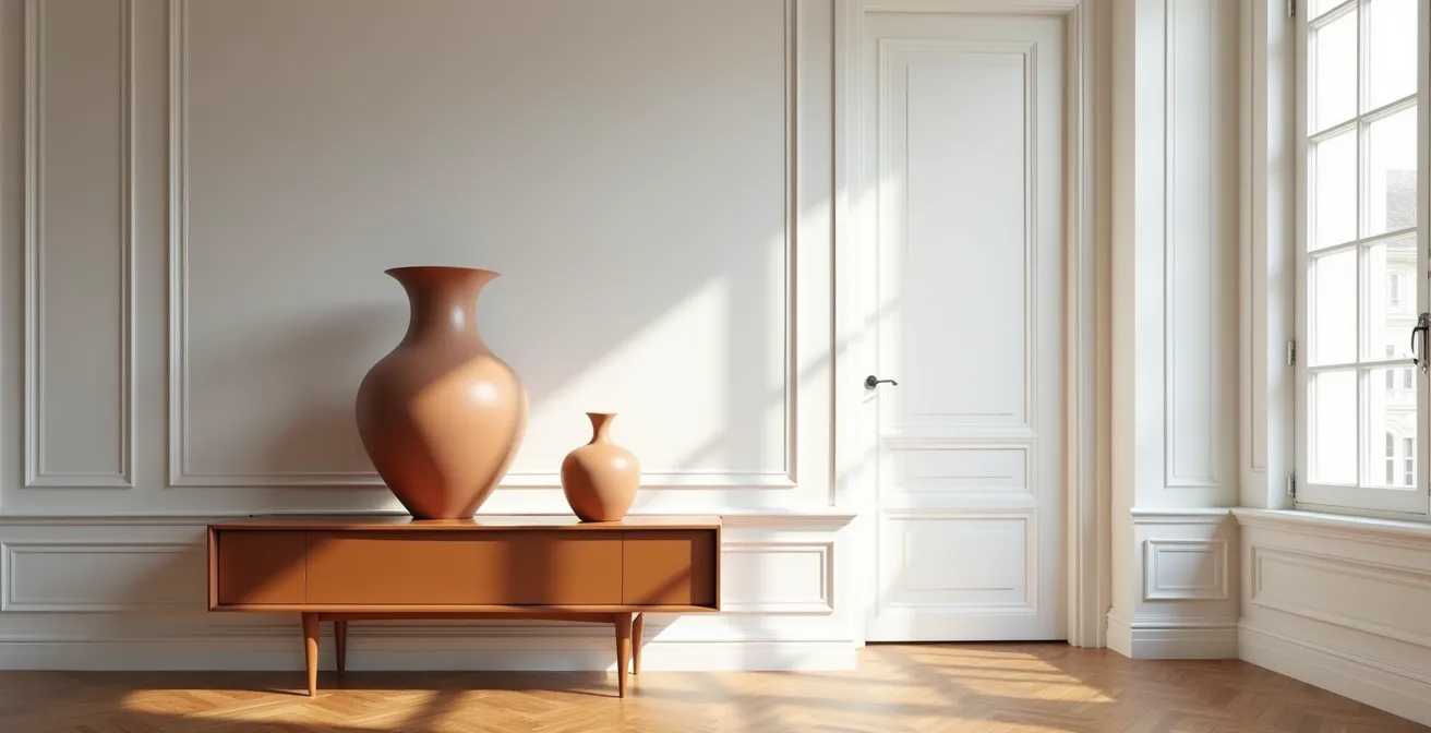 L’art du minimalisme chaleureux consiste à orchestrer un dialogue entre ces quelques pièces de mobilier vintage fortes et des objets sculpturaux soigneusement choisis. Imaginez une enfilade en chêne massif de René Gabriel, surmontée non pas d’une multitude de bibelots, mais d’une unique céramique brute de La Borne. La chaleur et la patine du bois répondent à la texture de la terre cuite. Chaque pièce renforce la présence de l’autre. C’est un dialogue de matières et d’époques. Cette démarche est aussi éco-responsable, privilégiant la seconde main et le savoir-faire durable. Des entreprises françaises comme Drugeot Manufacture perpétuent cet esprit en utilisant exclusivement du bois issu de forêts françaises gérées durablement, recyclant chaque chute de production.